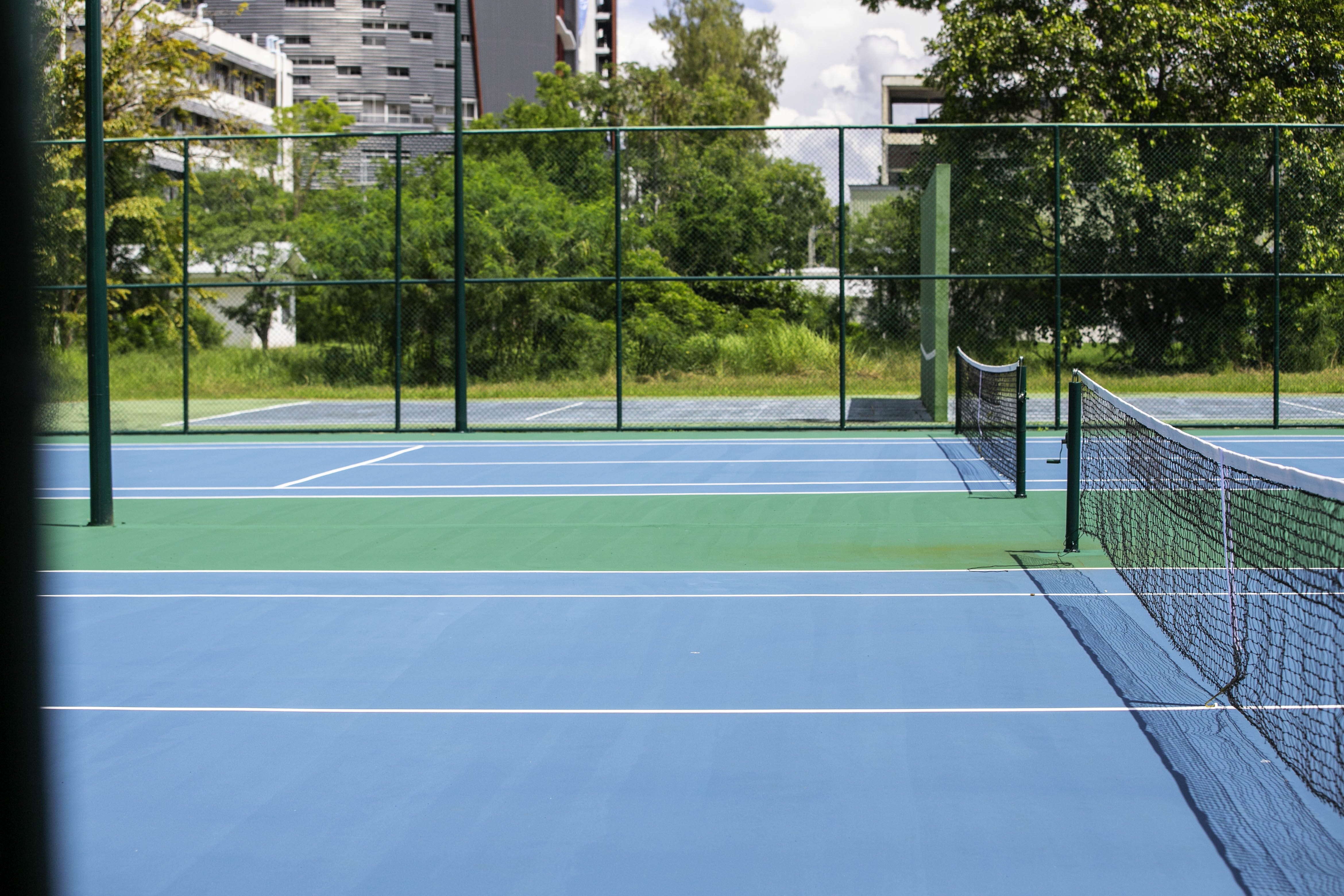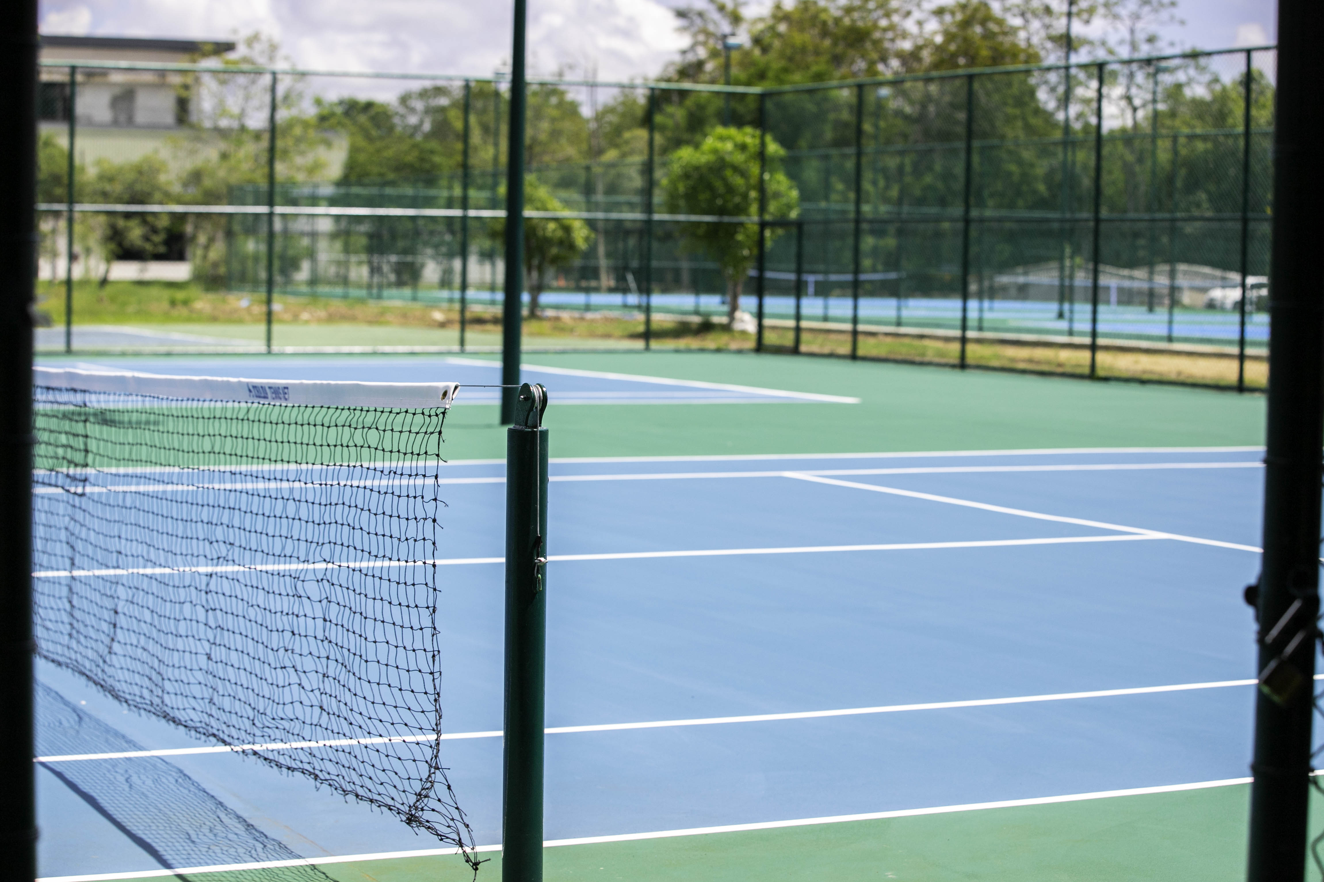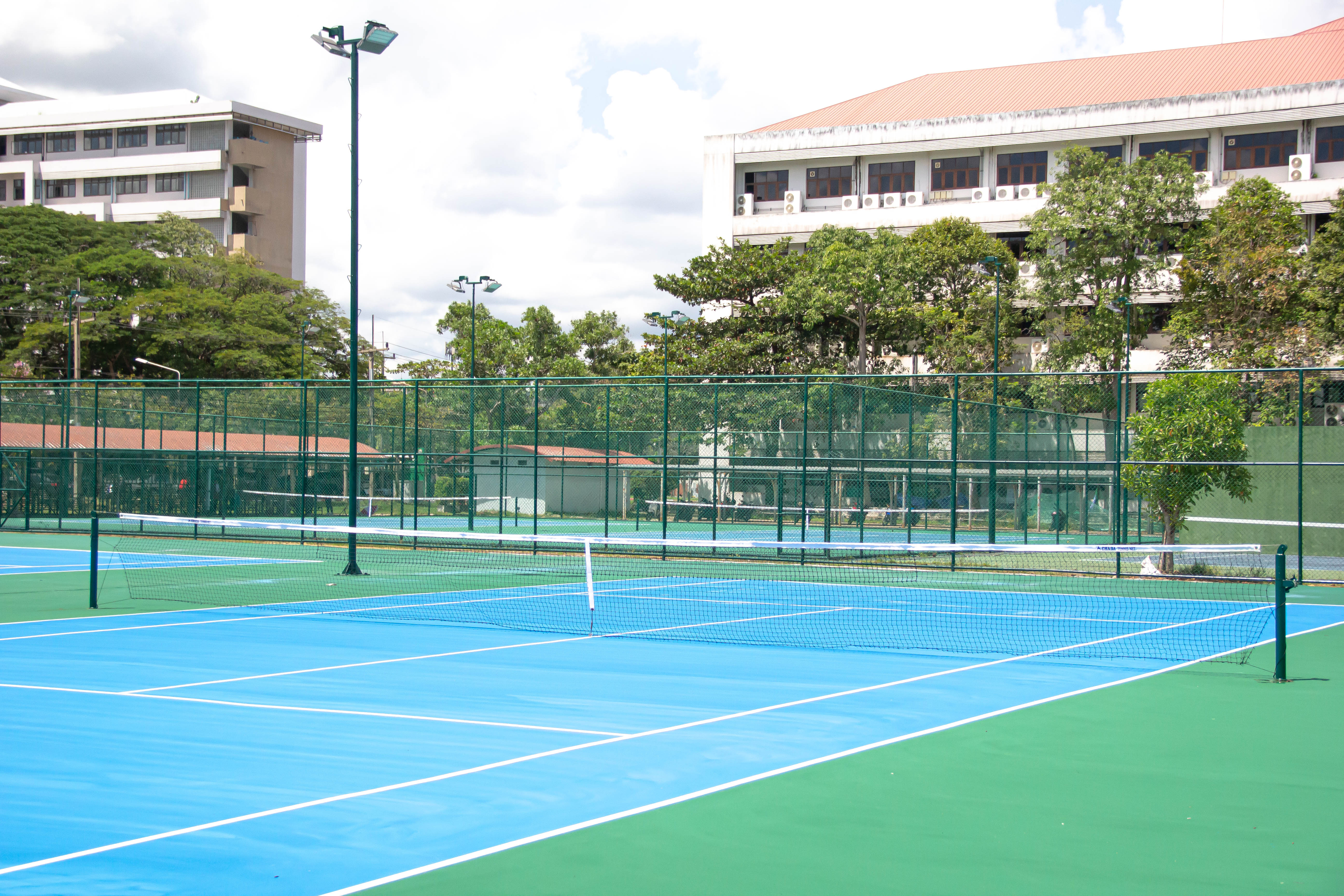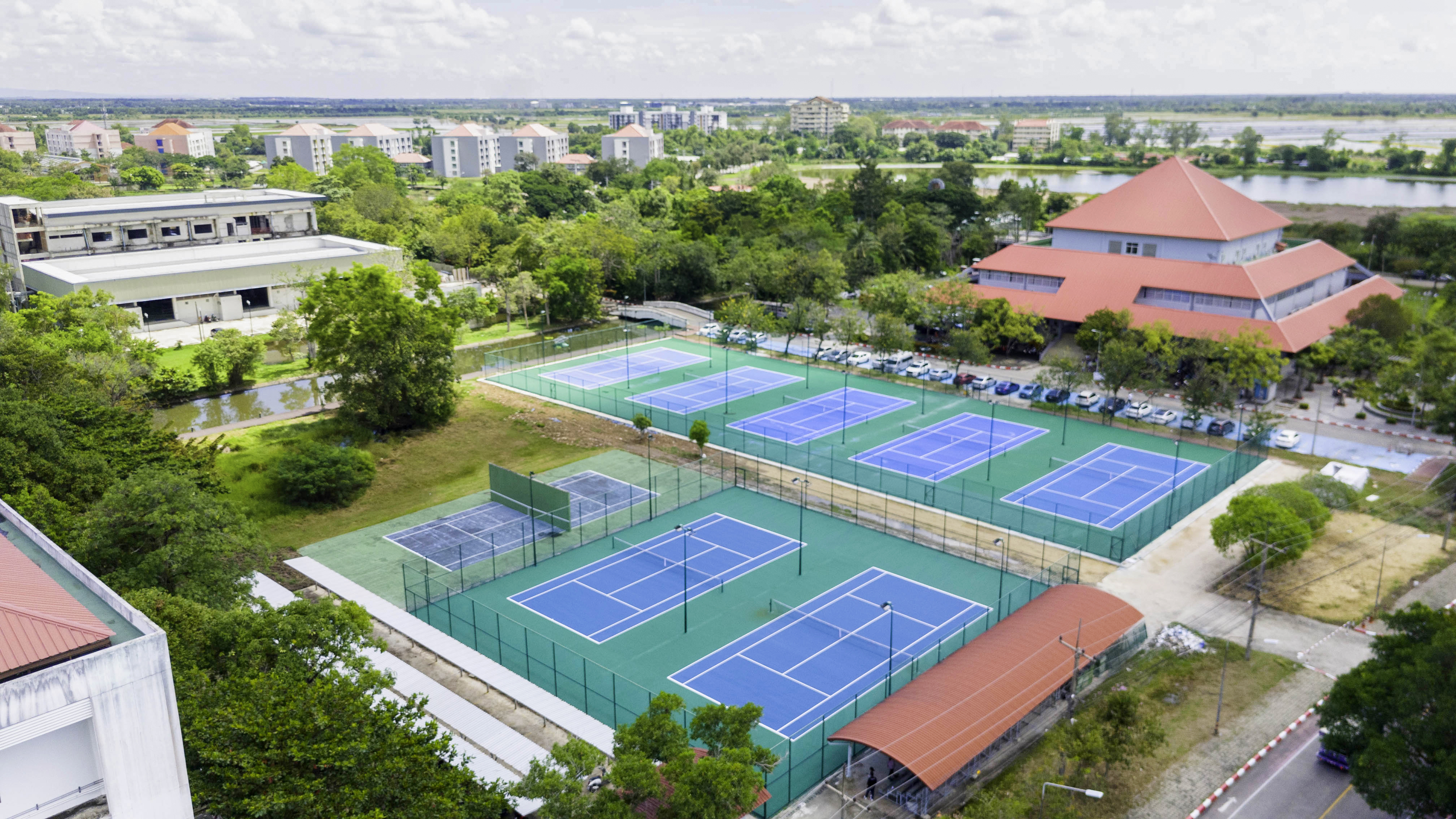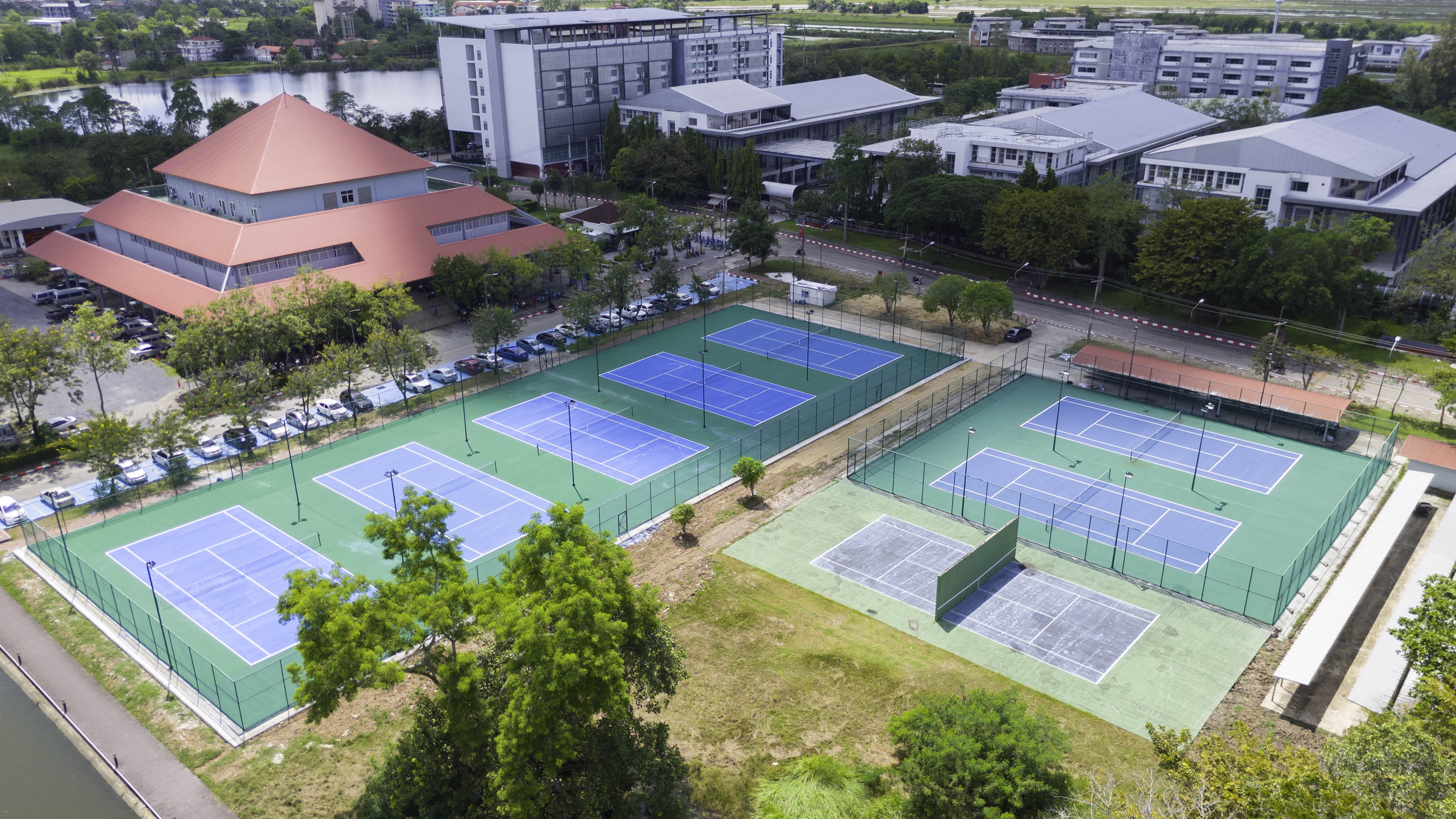 สนามกีฬาเทนนิสขนาดมาตรฐาน จำนวน 7 สนาม และสนามสำหรับฝึกซ้อมการตีลูกกระทบผนัง 1 สนาม พร้อมด้วยระบบไฟฟ้าส่องสว่าง มีอัฒจันทร์ผู้ชมขนาดความจุ 200 ที่นั่ง และห้องเปลี่ยนเครื่องแต่งกายนักกีฬาจำนวน 2 ห้อง