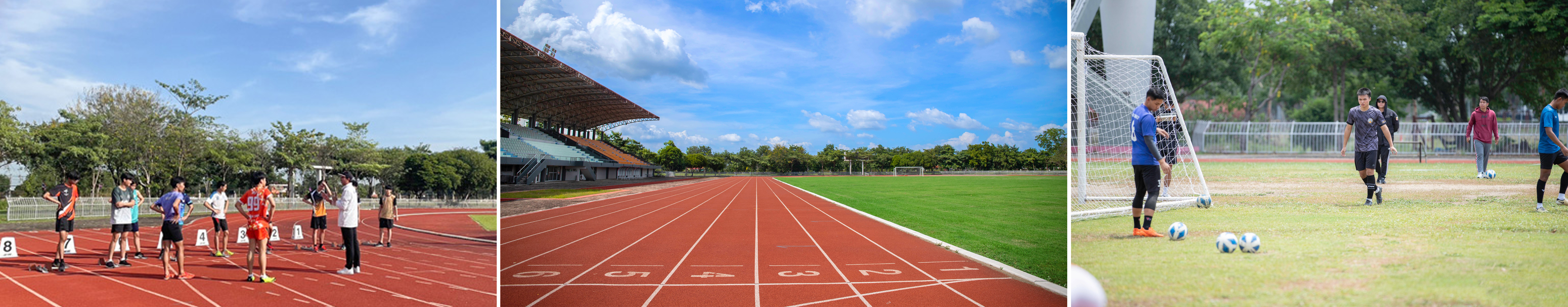 The Main Stadium at Ongkharak Campus features a standard natural grass football field, a synthetic rubber track with 9 running lanes, lighting systems, a 4,000-seat grandstand, four changing rooms, and multipurpose spaces. This venue is used for training, recreational activities, and sports competitions, and is accessible to the public.
